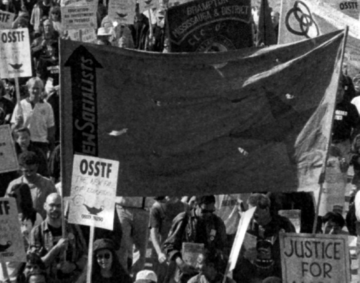 In thinking about Torvald after receiving the sad news of his death, I remembered the photo of him carrying the NSG banner during the North Bay Day of Action against the Harris government.